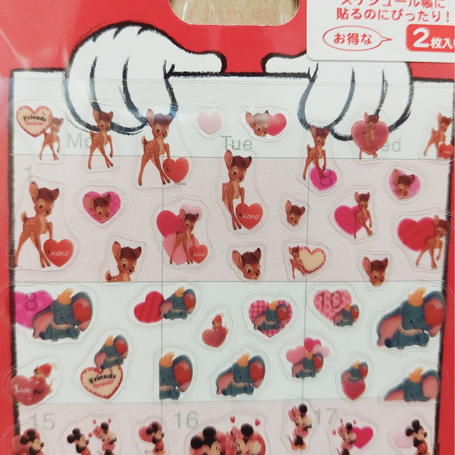 原裝日本 Disney Schedule Sticker 手脹貼紙 2枚入 Bambi Dumbo mickey Minnie Alice unibearsity